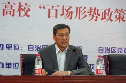 學院黨委副書記、紀委書記白托婭主持報告會。她指出,孫書記用生動地講述使我們對黨的歷史、黨的奮斗目標、中國建設發(fā)展的現(xiàn)狀有了深入理解,堅定了對以習近平同志為核心的黨中央集中統(tǒng)一領導的信心與信念。特別是孫書記通過幾個引人深思的哲理故事,教育引導青年學生如何把握機遇,成長為擔當民族復興大任的時代新人。希望同學們在聆聽報告之后,深入思考,進一步領會報告的深刻思想,特別是對我們青年人提出的一些具體要求,思考我們從現(xiàn)在開始要怎么做。尤其在座的都是學生骨干,大家身上的責任與擔當更重,要在同學中發(fā)揮示范表率作用,結合自身實際,心懷理想,做好當下,抓住機遇,鍛煉自己,學好專業(yè)知識,做品德高尚有理想的人,做合格的社會主義接班人和建設者。
