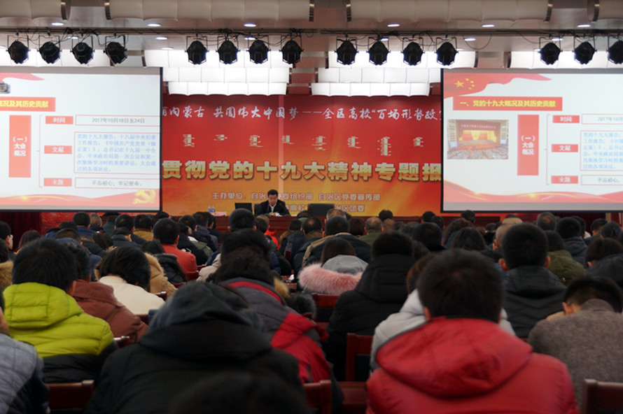 12月4日下午,自治區(qū)宣講團成員、發(fā)改委原巡視員鐵鋼走進內(nèi)蒙古大學(xué)交通學(xué)院作形勢政策報告,面向師生宣講黨的十九大精神。學(xué)院領(lǐng)導(dǎo)、副科級以上干部、教師和學(xué)生代表近400人參加了報告會。