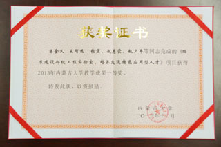 我院以柴金義院長牽頭,王智遠副教授、張宏副教授、趙志蒙教授與趙衛(wèi)平教授為主要參加人的《瞄準建設(shè)部級工程實驗室,培養(yǎng)交通特色應(yīng)用型人才》教學成果榮獲學校授予的校級教學成果獎一等獎。并在2014年9月11號內(nèi)蒙古大學召開2014年本科教學工作會議上頒發(fā)了獲獎證書。