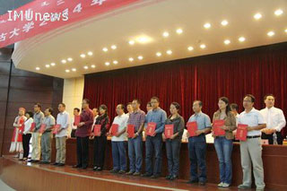 內(nèi)蒙古大學2013年校級教學成果一等獎的獲獎代表上臺領(lǐng)獎 |