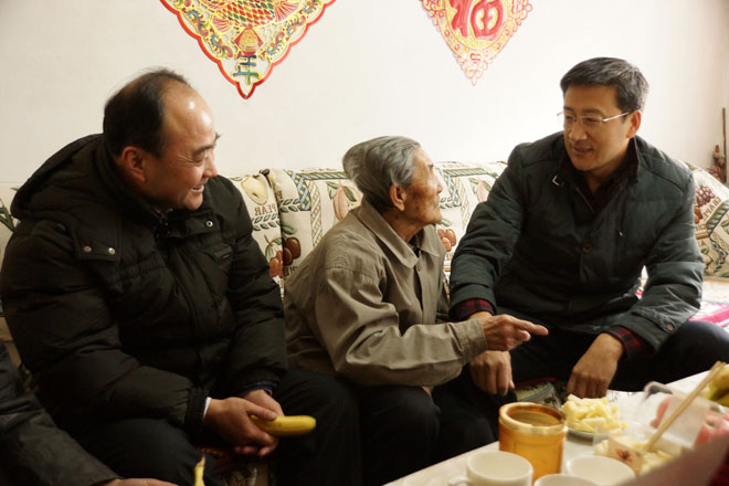 學(xué)院黨委書記孫智憑(右一),副院長(zhǎng)武鈞(右三)慰問(wèn)離休干部拉巴哈(右二)同志 |
