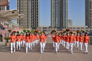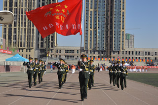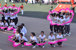 莊嚴(yán)的升國(guó)旗儀式后,學(xué)院黨委副書記、紀(jì)委書記白托婭致開幕詞。她代表學(xué)院黨政領(lǐng)導(dǎo)對(duì)本次運(yùn)動(dòng)會(huì)的順利召開表示熱烈的祝賀!對(duì)前來(lái)參加學(xué)院運(yùn)動(dòng)會(huì)開幕式的學(xué)校領(lǐng)導(dǎo)、來(lái)賓、老師和同學(xué)們表示熱烈的歡迎!向參加本次運(yùn)動(dòng)會(huì)的運(yùn)動(dòng)員、裁判員和工作人員致以誠(chéng)摯的問(wèn)候!她說(shuō),一年一度的田徑運(yùn)動(dòng)會(huì)已經(jīng)成為校園生活的重要組成部分,是對(duì)全院師生員工運(yùn)動(dòng)水平的一次檢閱,是對(duì)學(xué)院群眾性體育工作成果的一次檢驗(yàn),也是對(duì)廣大師生員工競(jìng)爭(zhēng)意識(shí)、團(tuán)隊(duì)精神、頑強(qiáng)意志的一次考驗(yàn),更是全院師生員工精神風(fēng)貌的一次全面展示。在十八屆三中全會(huì)上中央提出,學(xué)校要強(qiáng)化體育課和課外鍛煉,努力促進(jìn)青少年身體健康,強(qiáng)健體魄。同學(xué)們的體質(zhì)與健康事關(guān)國(guó)家和民族的未來(lái),廣大青年學(xué)生應(yīng)該積極響應(yīng)團(tuán)中央的號(hào)召,走下網(wǎng)絡(luò)、走出宿舍、走向操場(chǎng),做強(qiáng)健體魄,健康生活的倡導(dǎo)者。學(xué)院將以此次運(yùn)動(dòng)會(huì)為契機(jī),繼續(xù)廣泛開展“陽(yáng)光體育”,不斷加強(qiáng)校園體育文化建設(shè),營(yíng)造人人關(guān)心、人人參與體育活動(dòng)的氛圍,以健康的體魄和飽滿的熱情投入到學(xué)院各項(xiàng)事業(yè)的建設(shè)中來(lái)。相信全體運(yùn)動(dòng)員一定會(huì)本著“重在參與”的奧林匹克精神,在本屆運(yùn)動(dòng)會(huì)上賽出風(fēng)格、賽出水平、賽出成績(jī),爭(zhēng)取體育競(jìng)賽和精神文明的雙豐收。最后,預(yù)祝本屆運(yùn)動(dòng)會(huì)圓滿成功!  |  | 學(xué)院黨委副書記、紀(jì)委書記白托婭致開幕詞 | 鮮花方隊(duì) |