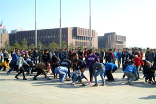 2014年11月4日中午,溫暖的陽(yáng)光照射在內(nèi)蒙古大學(xué)南區(qū)廣場(chǎng),交通學(xué)院學(xué)工處(團(tuán)委)學(xué)生聯(lián)合會(huì)的心理健康教育部正在組織學(xué)生參與一場(chǎng)愉悅身心的團(tuán)體游戲項(xiàng)目比拼?!凹佑?!”“加油!”吶喊助威聲不絕于耳。