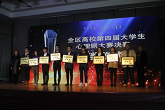 我院代表隊自導自演的心理劇《我的大學》,雖然排練時間短,但同學們表現(xiàn)突出,從來自全區(qū)多所高校的五十多個節(jié)目中脫穎而出進入漢語組十二強,經(jīng)過緊張激烈的決逐,最終獲得優(yōu)秀獎。