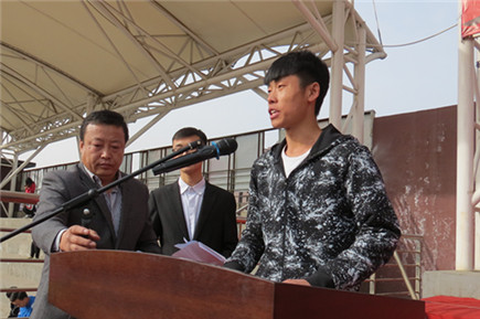 裁判員代表高群博宣誓 運(yùn)動(dòng)員代表李元龍宣誓