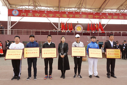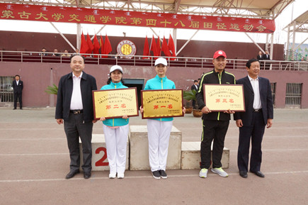 學(xué)院黨委副書記、院長(zhǎng)柴金義為獲得學(xué)生團(tuán)體總分前八名頒獎(jiǎng) 學(xué)院黨委副書記、紀(jì)委書記白托婭為獲精神文明先進(jìn)集體頒獎(jiǎng)