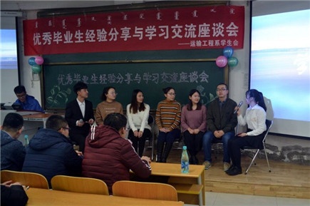 為進一步加強學(xué)風(fēng)建設(shè),增強同學(xué)們之間的溝通,幫助大一新生更好地明確學(xué)習(xí)目標與人生理想,12月6日晚運輸工程系在J111舉辦了“優(yōu)秀畢業(yè)生經(jīng)驗分享與學(xué)習(xí)交流座談會”。五位運輸工程系2014級與2015級的優(yōu)秀學(xué)生分別從“經(jīng)驗分享、學(xué)習(xí)交流、暢想未來”三個方面分享了自己大學(xué)生活的經(jīng)驗與體會。