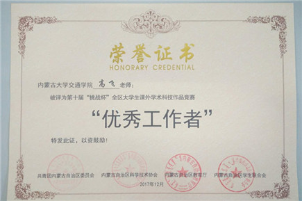 近日,第十屆“挑戰(zhàn)杯”全區(qū)大學生課外學術(shù)科技作品競賽成績揭曉。我院上報的作品《基于交通大數(shù)據(jù)預(yù)測的路徑誘導系統(tǒng)的開發(fā)》(學生作者:張重慶、劉宇杰、梁瑞田,指導教師:李曉娟、霍月英)獲得科技發(fā)明制作A類三等獎;作品《呼和浩特市、包頭市道路汽車行駛工況的研究》(學生作者:趙亞瓊,指導教師:姚延鋼、楊曉勤)獲得自然科學類學術(shù)論文三等獎。我院團委書記高飛被第十屆“挑戰(zhàn)杯”全區(qū)大學生課外學術(shù)科技作品競賽組委會評為優(yōu)秀工作者。