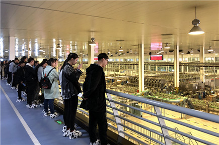 在了解了蒙牛乳業(yè)的歷史沿革、企業(yè)理念及產品推廣等基本情況后,全體同學在講解員的帶領下進入了生產區(qū)。生產車間、包裝車間、倉儲車間幾乎全部實現(xiàn)自動化,各類機械高效、有序的協(xié)作,整個生產線有條不紊的運轉著,源源不斷生產出各類乳制品,并最終分類入庫。同學們紛紛駐足觀看,不時記錄并討論?,F(xiàn)代化的物流設施設備展現(xiàn)在他們眼前,動態(tài)的包裝加工、分揀入庫等環(huán)節(jié)使同學們對物流活動的各個環(huán)節(jié)有了更加具象和生動的認識。