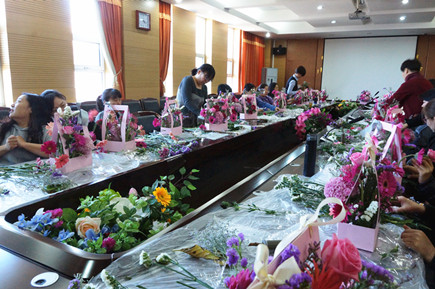 繽紛的花籃令現(xiàn)場彌漫著花的芳香,傳遞著對美好節(jié)日的祝福和幸福生活的無限向往。整個活動歡聲笑語不斷,洋溢著熱烈歡快的節(jié)日氣氛,大家在花卉的芳香中感受藝術(shù)的熏陶,學(xué)會點(diǎn)綴環(huán)境的插花技藝,同時也深切地感受到學(xué)院對婦女同志的關(guān)愛。