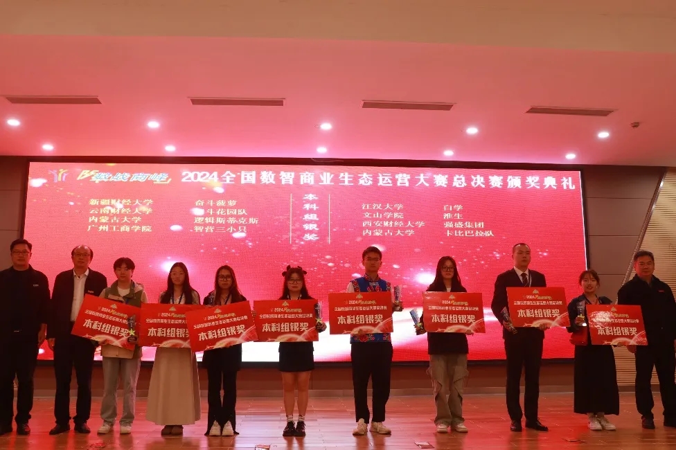 2024年11月15日-17日,由中國商業(yè)聯(lián)合會主辦,景德鎮(zhèn)學院承辦,上海百蝶教育科技有限科技公司提供技術支持的“數(shù)戰(zhàn)商峰”2024全國數(shù)智商業(yè)生態(tài)運營大賽總決賽(以下簡稱大賽)在景德鎮(zhèn)學院圓滿落幕,由我院運輸工程系任建偉教授和馮晨曦老師指導,張譯元(物流管理2201班)、郝理康(物流管理2201班)、霍翊天(交通運輸2201班)組成的邏輯斯蒂克斯隊(智能制造)和由運輸工程系張宏老師和高雨虹老師指導,孔詩雅(交通運輸2202班)、郭婷婷(交通運輸2202班)、閆珈源(交通運輸2202班)組成的卡比巴拉隊(新零售)分別榮獲各自賽道銀獎。